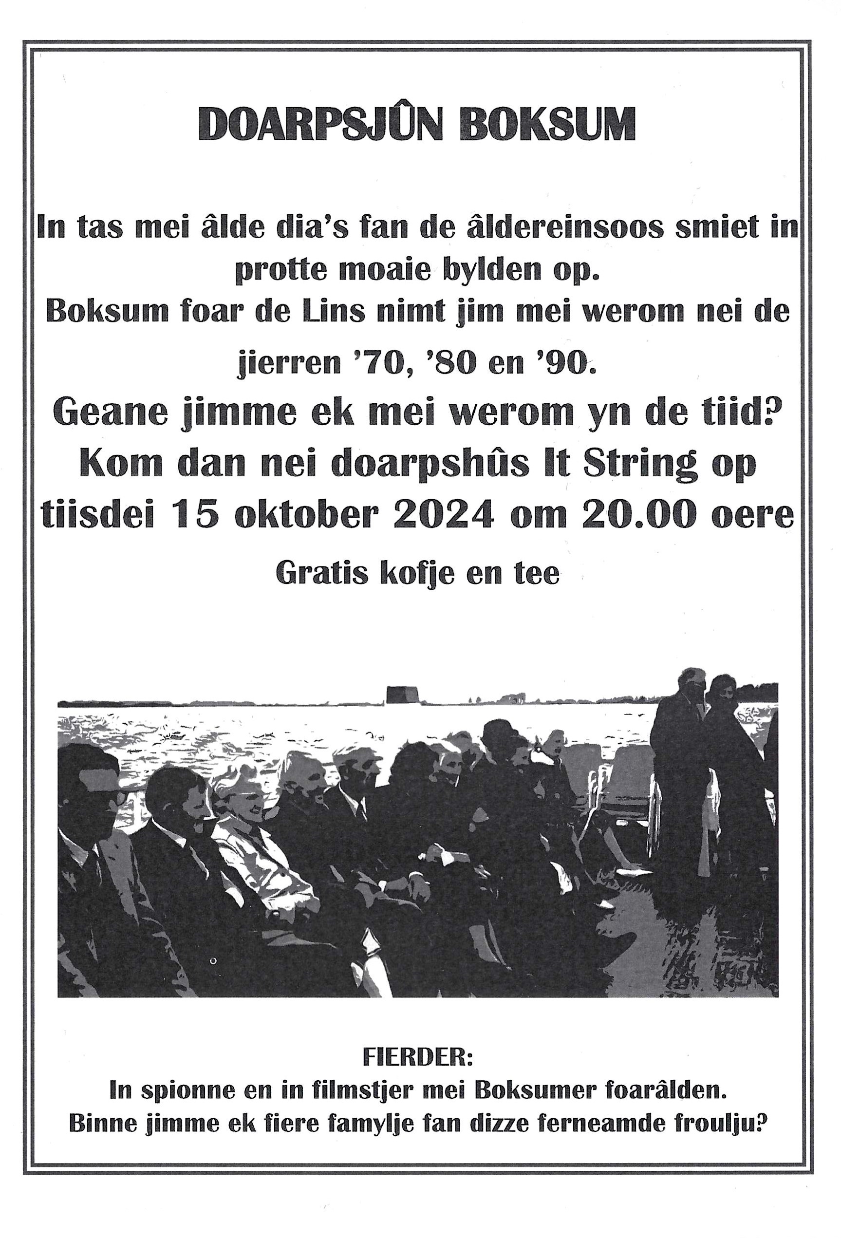 Kom dan naar dorpshuis It String op dinsdag 15 oktober 2024 om 20:00 uur.